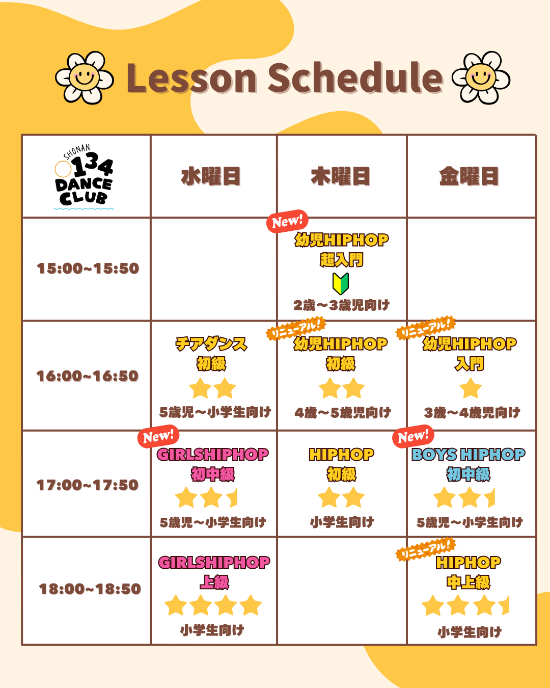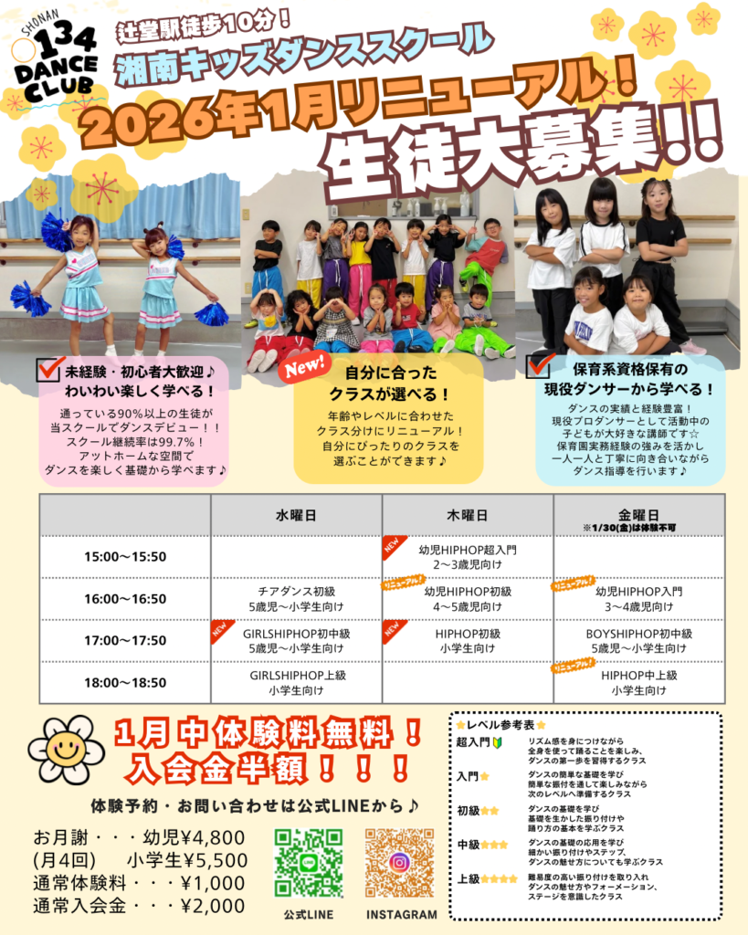 年齢・レベル・ジャンル別でぴったりのクラスが選べる☆